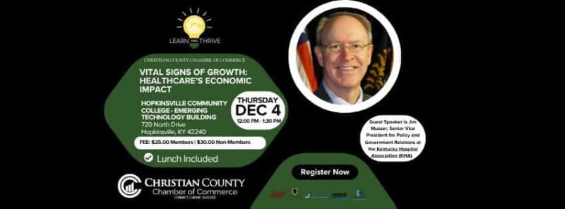 Join the Christian County Chamber of Commerce for our next Learn and Thrive event, “Vital Signs of Growth: Healthcare’s Economic Impact.”Guest speaker Jim Musser, Senior Vice President for Policy and…