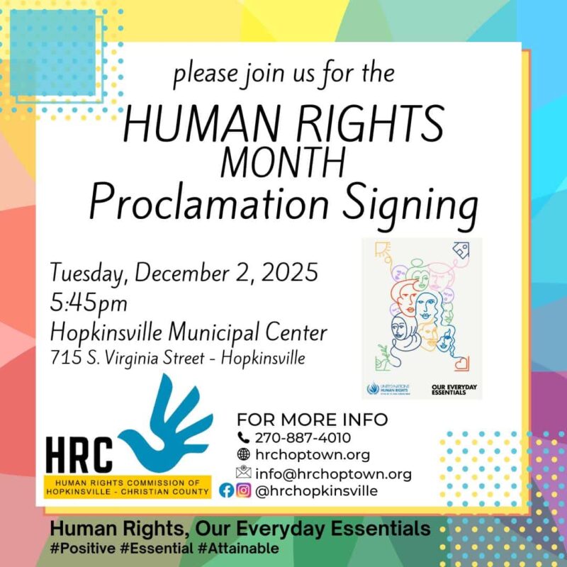 Join us next Tuesday as our local officials proclaim Human Rights Month for Hopkinsville-Christian County.