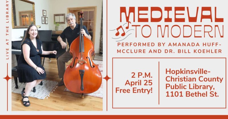 Medieval to Modern: A Live Concert, is scheduled for 2-3:30 p.m. April 25 at Hopkinsville-Christian Co. Public Library, 1101 Bethel St.The concert will be performed by Dr. Bill Koehler and…