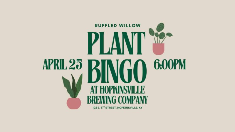 PLANT BINGO NIGHTHosted by Ruffled Willow at Hopkinsville Brewing CompanyJoin us for a fun evening on April 25 at 6:00 PM.We’re turning bingo into a plant lover’s dream night filled…