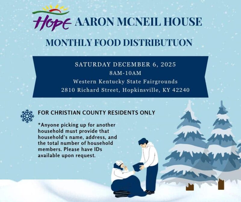 Western Kentucky State Fairgrounds 2810 Richard Street, Hopkinsville, KY, United StatesFor Christian County Residents Only! Anyone picking up for another household must provide that household's name, address and the total number of household members. Please have ID available upon request.