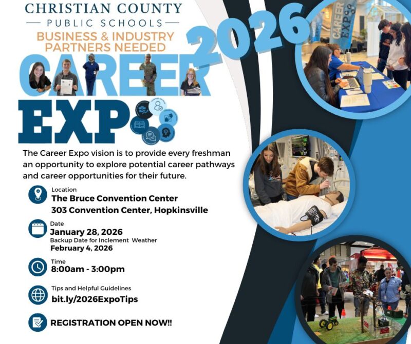 Christian County Public Schools (CCPS) is sponsoring its third annual CCPS Career Expo.The registration deadline is December 5, 2025, and we don’t want you to miss out on being part of this incredible event. YOU are what makes the Career Expo a success! Our mission: Give every CCPS freshman the chance to explore real career…