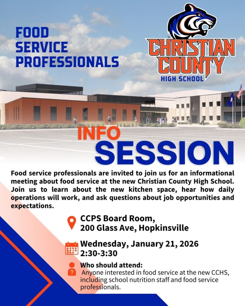 Food service professionals are invited to join us for an informational meeting about food service at the new Christian County High School!Come learn about the new kitchen space, hear how…