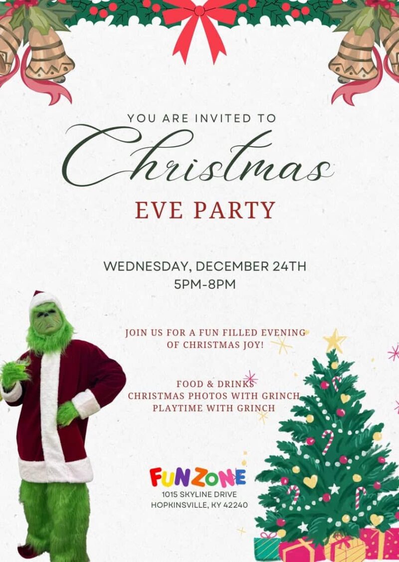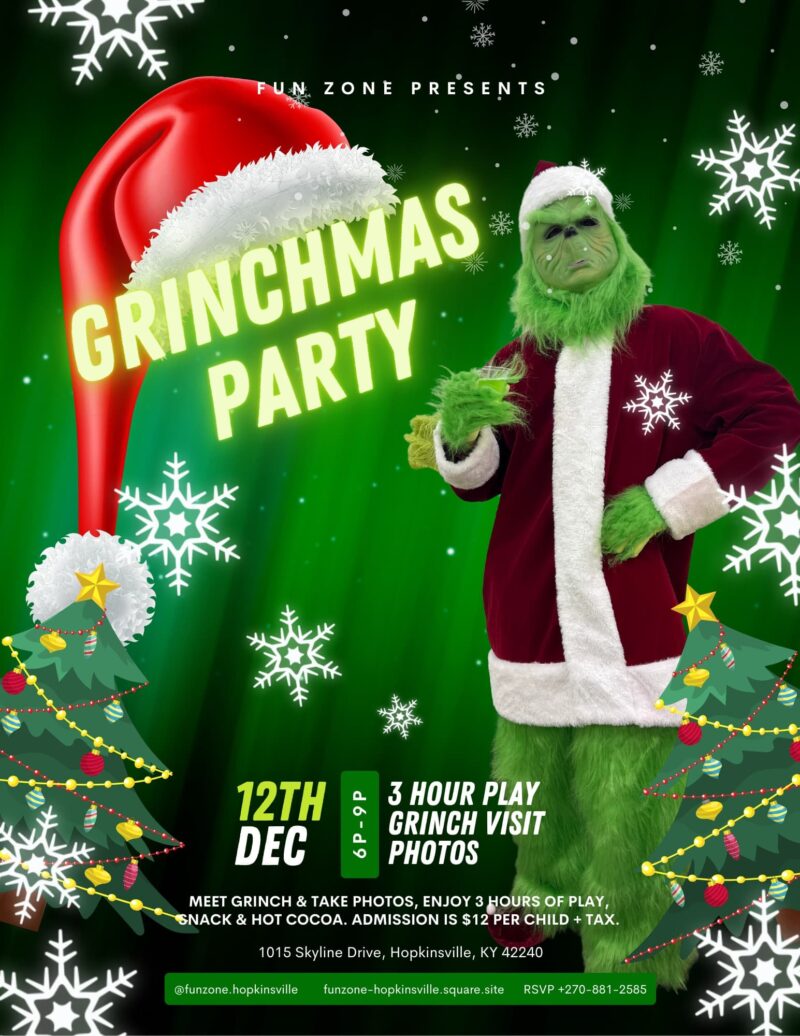 Grinchmas Party Get your favorite Christmas gear and join us for a night of fun with the Grinch! Friday, December 12th Time: 6:00PM - 9:00PM3 Hours of PlayPhotos & Playtime with GrinchSnack & Hot CocoaBring a friend for an unforgettable Grinchmas Playdate! We can’t wait to see all of the smiling faces! 1015 Skyline Drive,…