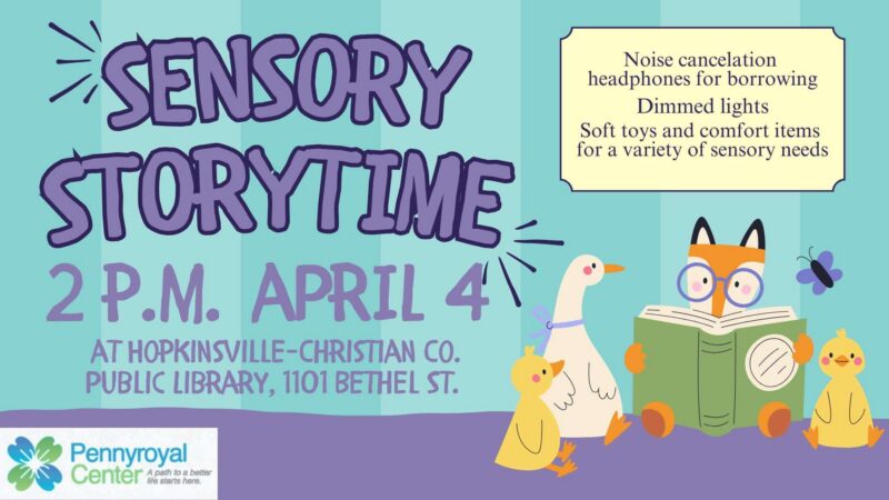 Sensory Storytime is a special time for our friends who prefer a quieter setting. Sensory Storytime is scheduled for 2-3 p.m. Feb. 7 at Hopkinsville-Christian Co. Public Library, 1101 Bethel St.Noise cancellation headphones will be available for borrowing during the storytime. We will have the lights dimmed and also provide soft toys and comfort items…