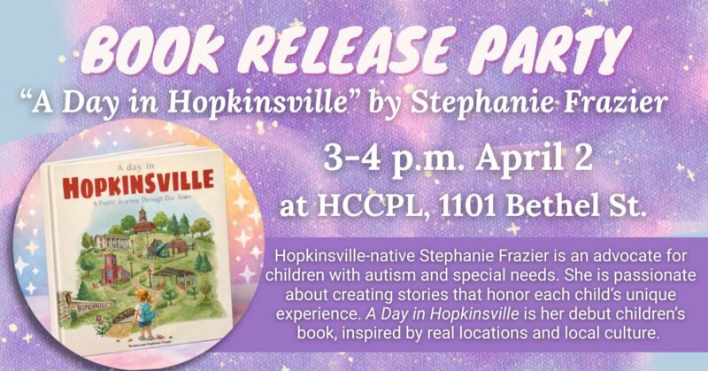 Hopkinsville-native Stephanie Frazier is an advocate for children with autism and special needs. She is passionate about creating stories that honor each child’s unique experience. "A Day in Hopkinsville" is her debut children’s book, inspired by real locations and local culture.There will be a Book Release Party 3-4 p.m. April 2 at Hopkinsville-Christian Co. Public…