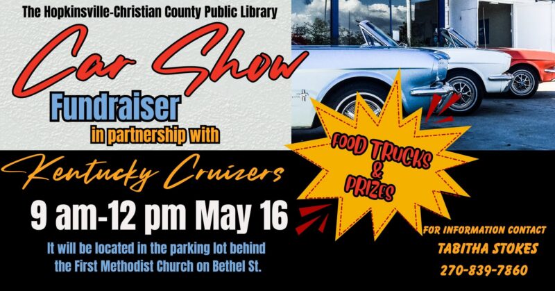 HCCPL is so excited to partner with "Kentucky Cruizers" for a Car Show! Car Show will be 9 a.m.-noon May 16 at the First United Methodist Church Parking Lot on…