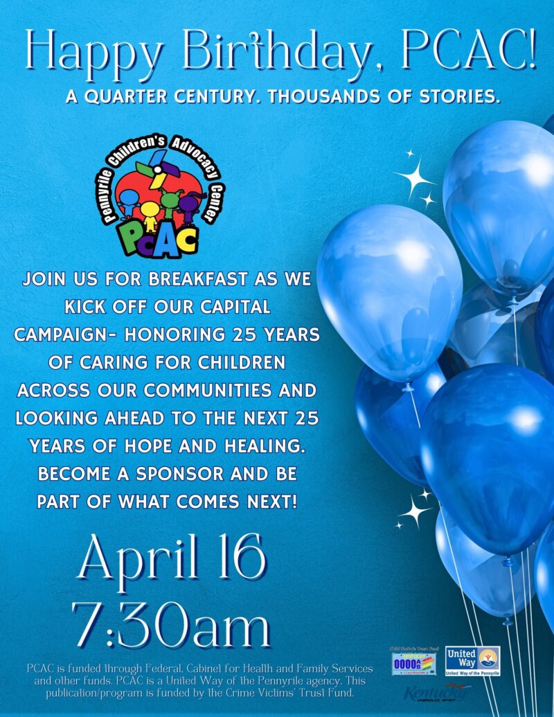 7:30AM at The Pioneers in Hopkinsville.Join us as we kick off PCAC’s 2026 Capital Campaign and celebrate 25 years of serving children and families in our community!We invite our supporters, partners, and friends to come share breakfast with us while learning more about our vision for the future and how you can help us continue…