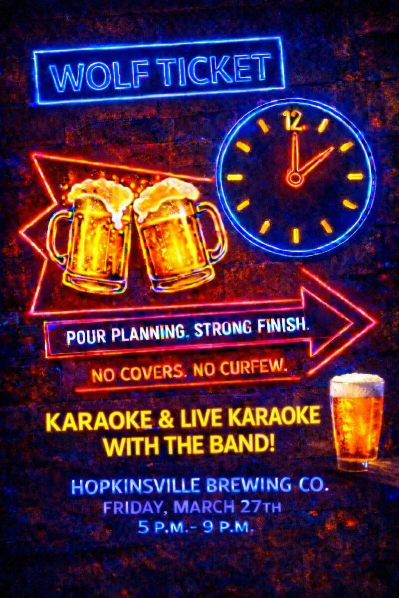 Wolf Ticket is a high-energy cover band from Madisonville, Kentucky, ripping through rock, country, and soul favorites loud and live, with interactive karaoke breaks that pull the crowd out of their seats and into the spotlight.