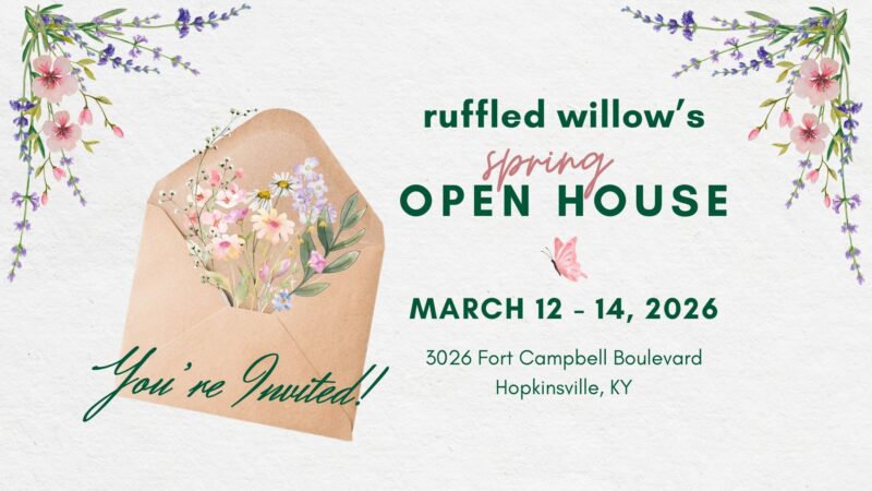 Spring is blooming at Ruffled Willow and we cannot wait to welcome you to our Spring Open House | March 12–14 We’re so excited to share all the beautiful new pieces we’ve gathered for the season, our designer spring wreaths, garden-inspired floral arrangements, happy houseplants, charming home décor, and so much more. Every corner of…